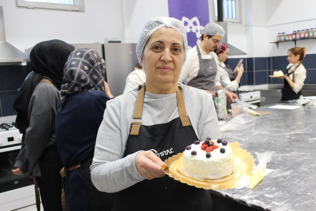 Torunu için atölyeye katılan Gülsen Güvenç, “Torunum 10 yaşında. Çok mutluyum. Ona bir şey yaptığım, sevdirebildiğim ve yedirebildiğim için mutluyum.” ifadelerini kullandı.