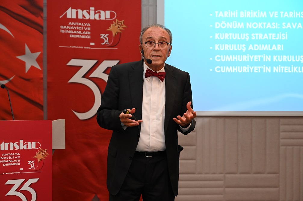 Antalya Sanayici ve İş İnsanları Derneği’nin (ANSİAD) 12. Olağan Toplantısı’nda konuk konuşmacı olarak Emekli Tümgeneral Ahmet Yavuz yer aldı. Toplantıda, Cumhuriyet’in kuruluş süreci, Atatürk’ün liderliği ve tarihin dönüm noktaları kapsamlı biçimde ele alındı. Emekli General Yavuz, Atatürk’ün stratejik öngörüsünü ve Cumhuriyet’in temellerini tarihsel verilerle değerlendirdiği konuşmasında, katılımcılara derin bir tarihsel perspektif sundu. Toplantının açılışında konuşan ANSİAD Yönetim Kurulu Başkanı Ercan Özbek, Cumhuriyet’in çağdaş değerlerine, bilimin ve üretimin rehberliğine vurgu yaptı.