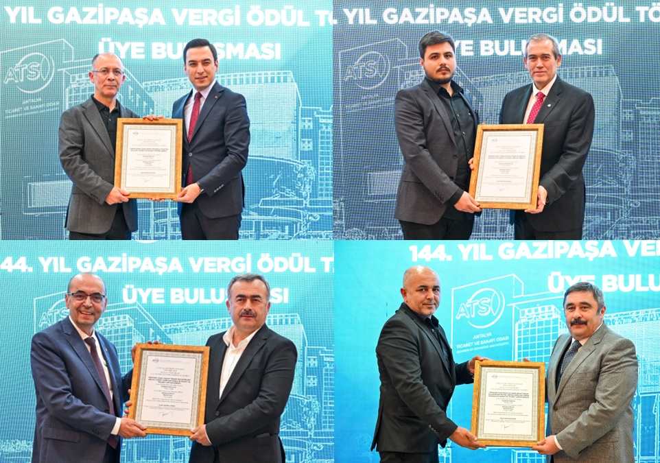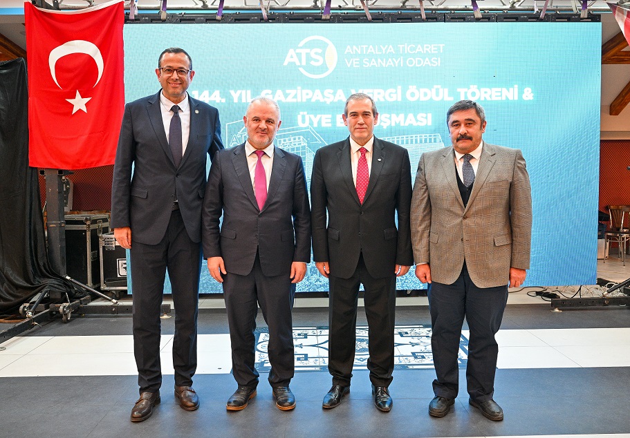 Antalya Ticaret ve Sanayi Odası (ATSO) Yönetim Kurulu Başkanı Yusuf Hacısüleyman’ın ev sahipliğinde düzenlenen “ATSO 144. Yıl Gazipaşa Vergi Ödül Töreni ve Üye Buluşması”, iş dünyası, kamu temsilcileri ve sivil toplum kuruluşlarının geniş katılımıyla gerçekleştirildi.