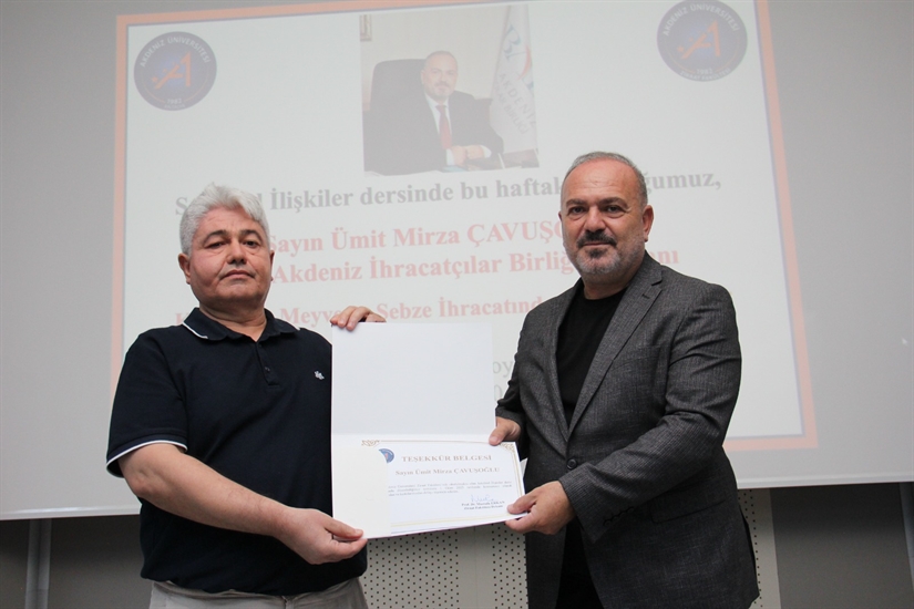 Batı Akdeniz İhracatçılar Birliği (BAİB) Başkanı Ümit Mirza Çavuşoğlu, Akdeniz Üniversitesi Ziraat Fakültesi’nde eğitim gören öğrencilerle “Sektörel İlişkiler” dersinde bir araya geldi.