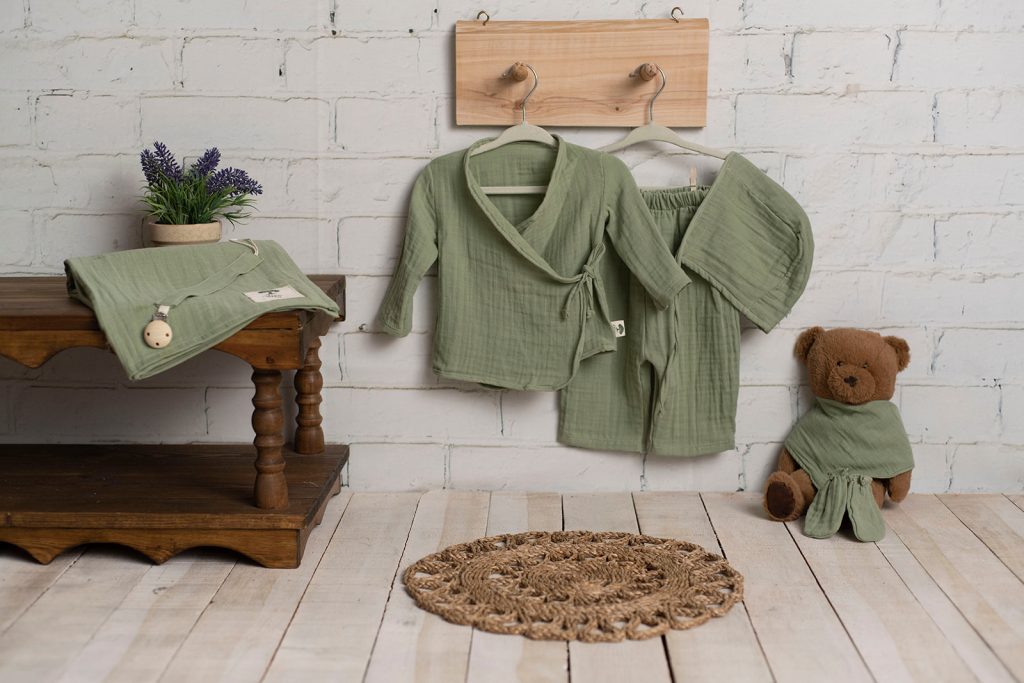 En çok satılan ürünümüz; müslin kumaştan üretilen Yeni doğan Bebek Kimono Setimiz. Bebeklerin hassas cildine uygun organik müslin kumaşından üretilen bu set, yeni doğanlar için tasarlanmış şık ve fonksiyonel parçalar içeriyor. Kimono alt ve üst parçaları, bebeklerin rahat hareket etmesini sağlarken, aynı zamanda şık bir görünüm sunuyor. Tarçın, krem – zeytin, mint, mavi, pudra, haki, cappuccino, koyu bej, hardal ve antrasit gibi çeşitli renk seçeneklerimiz var.