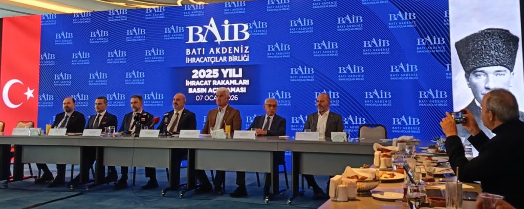 Antalya, Burdur ve Isparta illerini kapsayan Batı Akdeniz’in 2025 yılı ihracat rakamları Akra Otel’de düzenlenen basın toplantısı ile kamuoyuna aktarıldı. Basın toplantısına BAİB Başkanı Ümit Mirza Çavuşoğlu, BAİB Başkan Yardımcısı Mustafa Küçükyaman, BAİB Yönetim Kurulu Üyeleri Osman Şahlan, Ahmet Tekin, Mehmet Ali Can, Okan Alanyalı ve Denetim Kurulu Üyesi Yusuf Akgül katıldı.