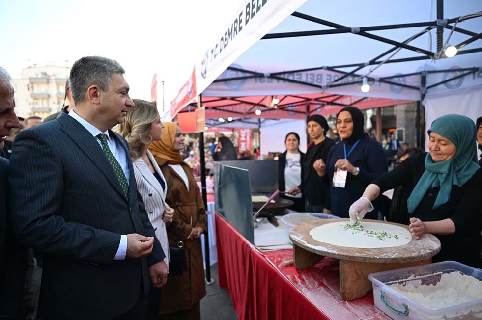 Antalya’da son dönemde başlatılan coğrafi işaret seferberliği kapsamında Demre’de coğrafi işaret başvurusu yapılan ürünlerin de festival kapsamında tanıtıldığını ifade eden Vali Şahin “Antalya’nın yöresel ürünlerini markalaştırmak ve tanıtmak amacıyla Coğrafi İşaret konusunda seferberlik mantığıyla çalışıyoruz. Kaymakamlığımız öncülüğünde, İl Tarım ve Orman Müdürlüğümüz sekreteryasında, Belediyemizin de destekleriyle Türk İslam kültürünün birer numunesi olarak Demre’ye özel olan coğrafi işaret başvurularını yaptığımız ve tescil sürecindeki ürünlerimiz de bu festival kapsamında tanıtılıyor. Stantlarımızda misafirlere sunuluyor çok da büyük ilgi görüyor. Sadece tescilli ürünlerden ziyade bizim kültümüze ait olan keşkeğimiz, bazlamamız gözlemimiz gibi yöresel ürünlerimiz de bu meydanda tanıtılıyor.” dedi.
