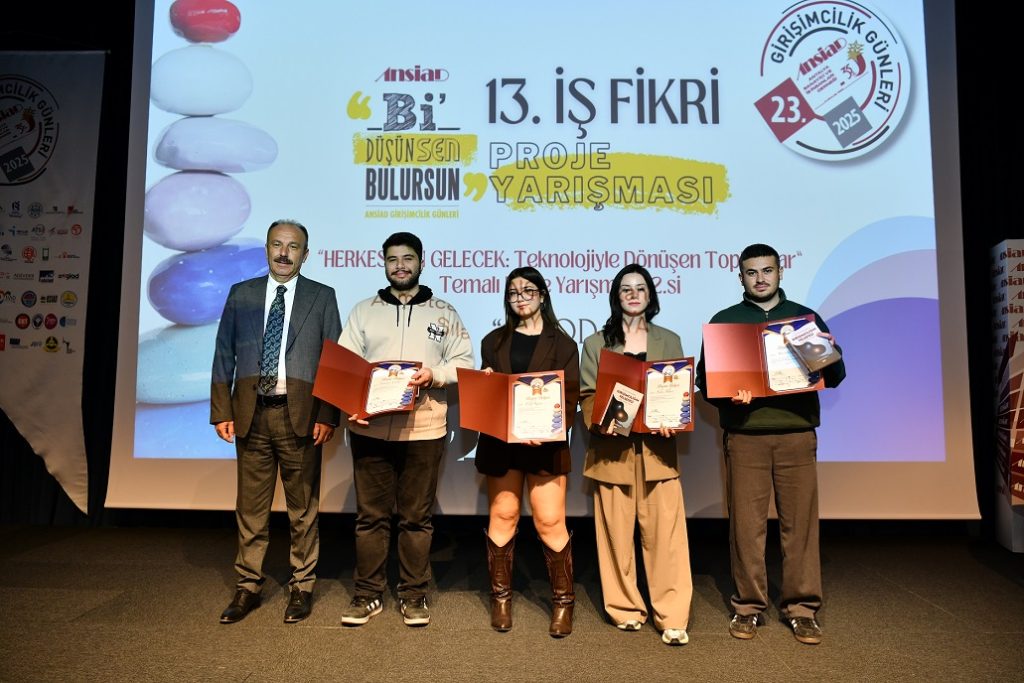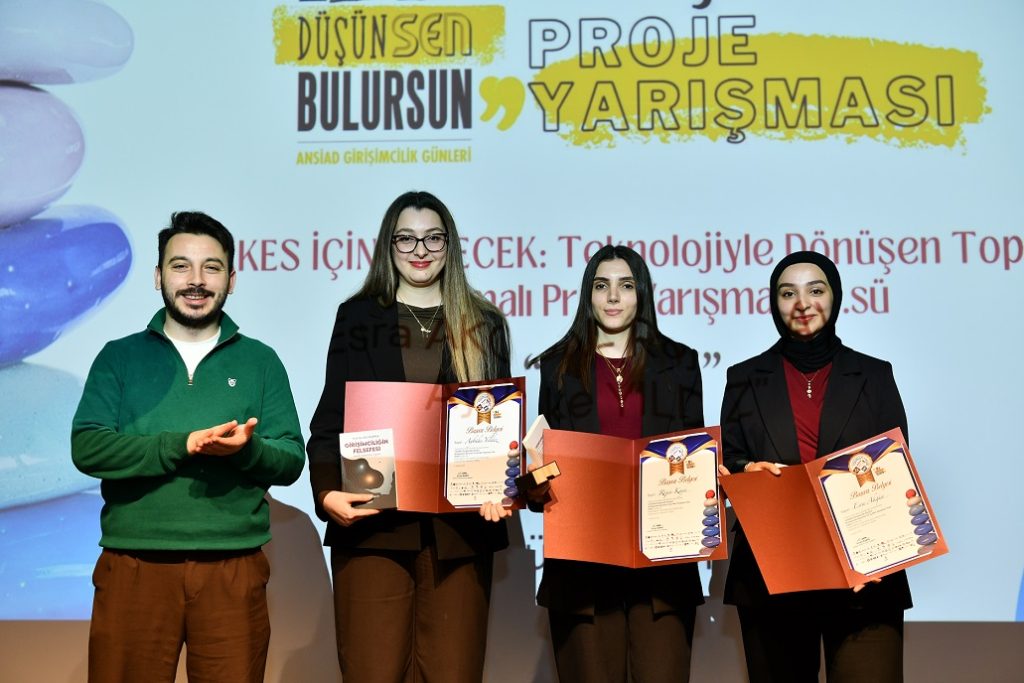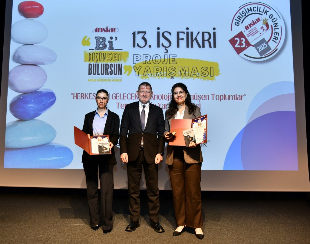 ANSİAD 13. İş Fikri Yarışması “Herkes İçin Gelecek: Teknolojiyle Dönüşen Toplumlar” temalı Proje Yarışması’nda; 1.’lik ödülü, “Rebiota” projeleriyle Melisa Karaca ve Rabia Demir’e, ödülleri Antalya Ticaret ve Sanayi Odası Meclis Başkanı & ANSİAD Üyesi Ahmet Öztürk tarafından, 2.’lik ödülü, “Good4” projeleriyle Ahmetcan Kılınç, Doğukan Çelik, Sıla Altay ve Elif Kaya’ya, ödülleri Büyükşehir Belediyesi Başkan Başdanışmanı Dr. Cem Oğuz tarafından, 3.’lük ödülü, “VetAI” projeleriyle Esra Akgün, Rojin Kaya ve Aybüke Yıldız’a, ödülleri HABİTAT Derneği Girişimcilik Programı Proje Yöneticisi ve GEN Türkiye Direktörü Hasan Basri Cihan tarafından takdim edildi.
