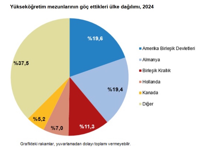 Bir lisans programını tamamlayanların göç etmek için tercih ettikleri ilk beş ülke sırasıyla Amerika Birleşik Devletleri (%19,6), Almanya (%19,4), Birleşik Krallık (%11,3), Hollanda (%7,0) ve Kanada (%5,2) oldu.