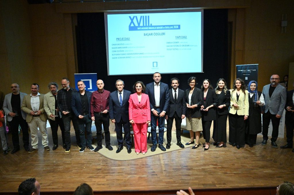 Etkinlik kapsamında düzenlenen XVIII. Batı Akdeniz Mimarlık Sergisi ve Ödül Töreni’nde, bölgenin mimari estetiğine katkı sunan başarılı projeler ödüllendirildi. “Proje” ve “Yapı” dallarında verilen başarı ödüllerinin yanı sıra, meslekte 30. ve 40. yılını dolduran duayen mimarlara plaket takdim edilerek mesleki süreklilik onurlandırıldı.
