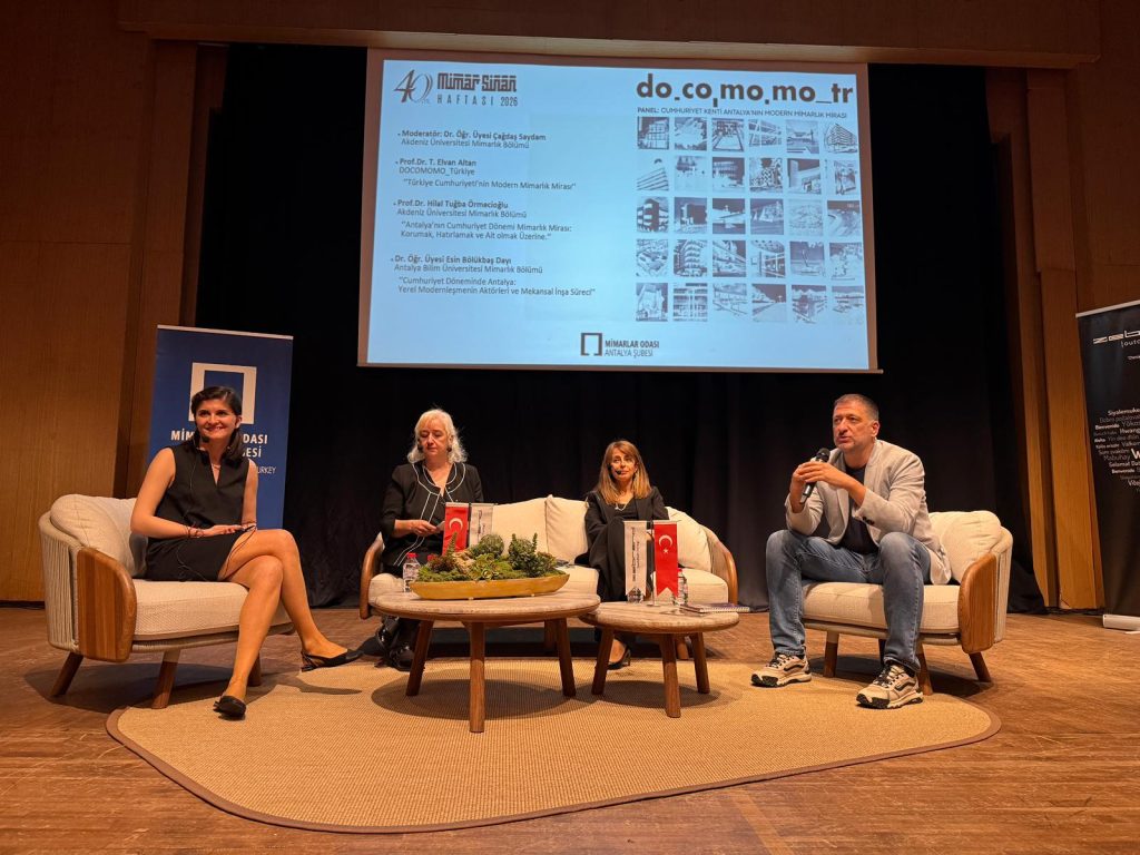 Programın en dikkat çekici bölümlerinden birini oluşturan “Cumhuriyet Kenti Antalya’nın Modern Mimarlık Mirası” başlıklı panelde, alanında uzman akademisyenler kentin mimari tarihini derinlemesine masaya yatırdı. Dr. Öğr. Üyesi Çağdaş Saydam moderatörlüğünde gerçekleşen oturumda Prof. Dr. T. Elvan Altan Türkiye’nin modern mimarlık mirasını genel bir perspektifle ele alırken, Prof. Dr. Hilal Tuğba Örmecioğlu Antalya’nın Cumhuriyet dönemi mirasını koruma ve aidiyet kavramları üzerinden değerlendirdi. Dr. Öğr. Üyesi Esin Bölükbaş Dayı ise yerel modernleşmenin aktörleri ve mekansal inşa süreçlerine odaklanarak dinleyicilere zengin bir tarihsel sunum gerçekleştirdi.