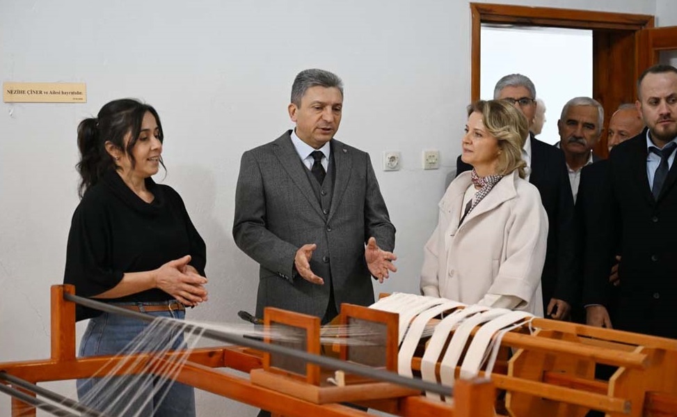 Törenin ardından Vali Hulusi Şahin ve eşi Ebru Şahin, İbradı’nın köklü kültürünü yaşatan bez ayağı dokuma, geleneksel el dokuması ve çarpana dokuma gibi birçok dokuma türünün öğretildiği Halk Eğitim Merkezi Yöresel Bez Dokuma Kursunu ziyaret etti. Ziyarette, kurs kapsamında yürütülen çalışmalar ve üretilen yöresel ürünler hakkında bilgi aldı.
