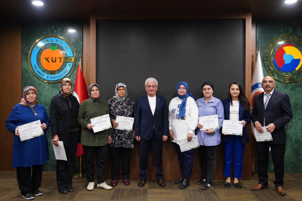 Programın tamamlanmasının ardından düzenlenen sertifika takdim törenine katılan Başkan Mustafa Geyikçi; İlçe Kaymakamı Musa Kazım Çelik, KUTSO Yönetim Kurulu Başkanı Fahri Özen, ATSO Yönetim Kurulu Başkan Yardımcısı Boğaçhan Göksu, TOBB Antalya Kadın Girişimciler Kurulu Başkanı Serap Kocaoğlu ile birlikte katılımcılara belgelerini teslim etti.