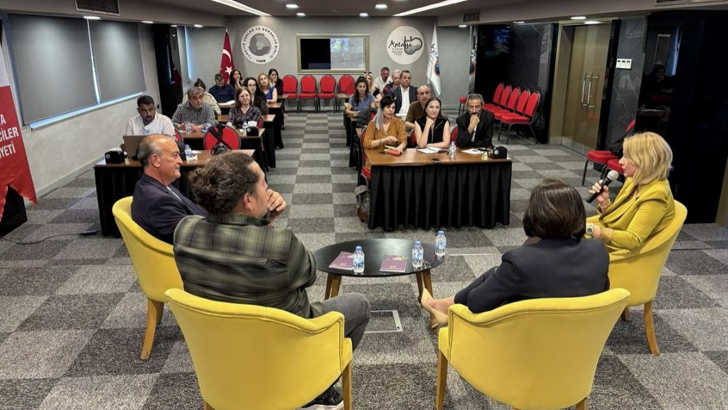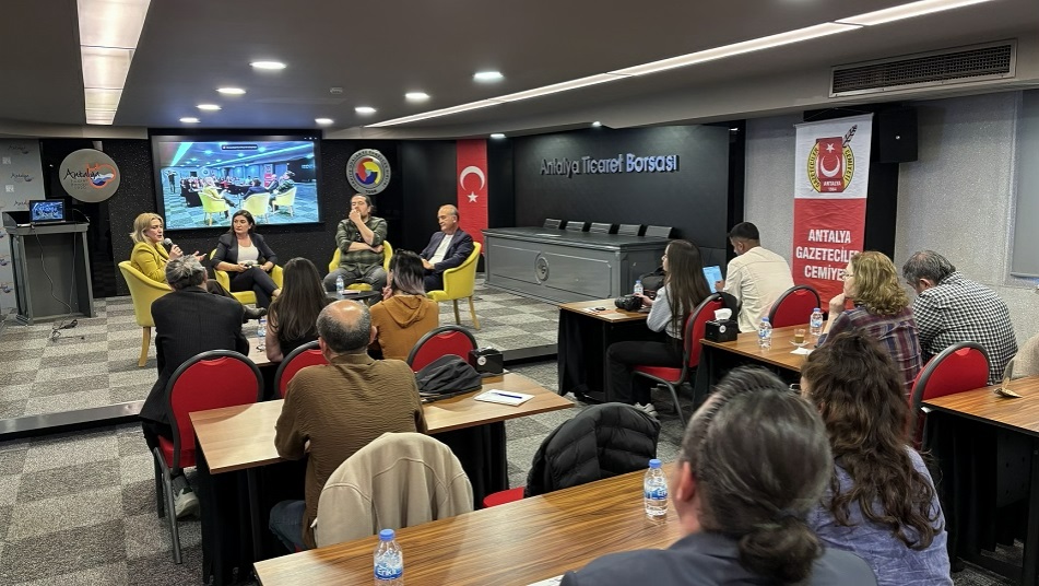 Antalya Ticaret Borsası toplantı salonunda, EMD Üyesi ve Antalya Ticaret Borsası Basın Danışmanı Vahide Yanık’ın moderatörlüğünde gerçekleşen “Turizmde Haber Toplama ve Yazma Teknikleri” başlıklı ilk derste; TUYED YK Üyesi ve Tourism Today Haber Müdürü Tuncay Sevin, Alternatif Turizm İşletmecileri Birliği Başkan Yardımcısı Cem Karaca, Anadolu Ajansı Başmuhabiri Hatice Özdemir ve Antalya Kent Konseyi Turizm Çalışma Grubu Başkanı Recep Yavuz, deneyimlerini paylaştı.